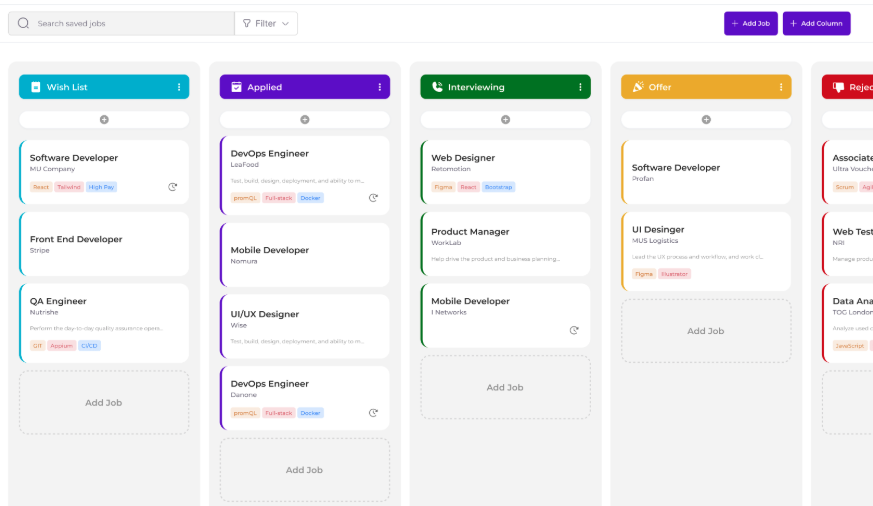 Applied → Interview → Offer → Denied, built automatically from your signals.